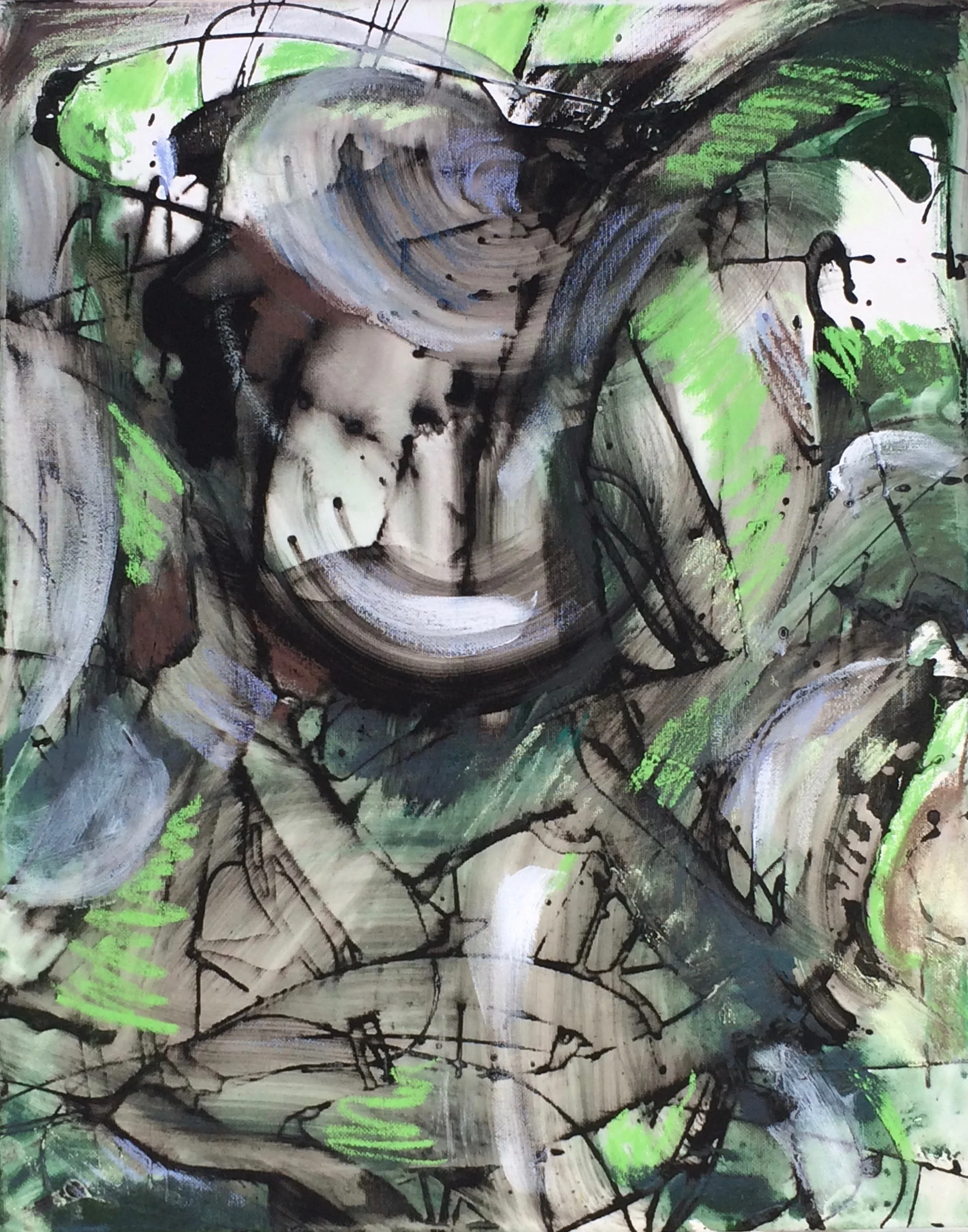 Jade Abstract 2016 Pastel and oil enamel on canvas 16" x 20"