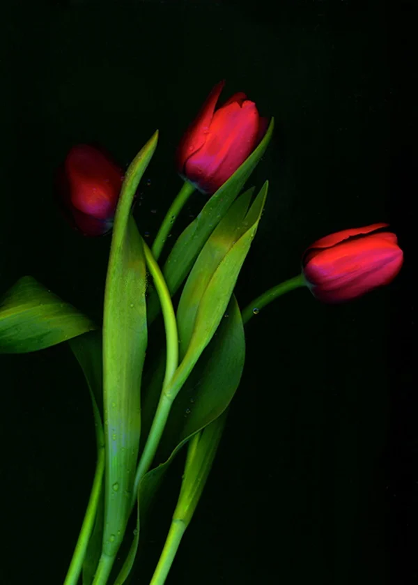 Red Tulips on Black 2003 Enhanced giclee on fine art paper
